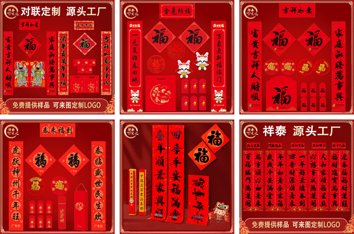 專業(yè)定制廣告對(duì)聯(lián)春聯(lián)、福字、窗花、紅包、禮包/禮盒。定制產(chǎn)品:植絨對(duì)聯(lián)、植絨福字、燙金對(duì)聯(lián)、彩印對(duì)聯(lián)、剪紙、利是封、紅包、彩印禮包、無紡布禮袋